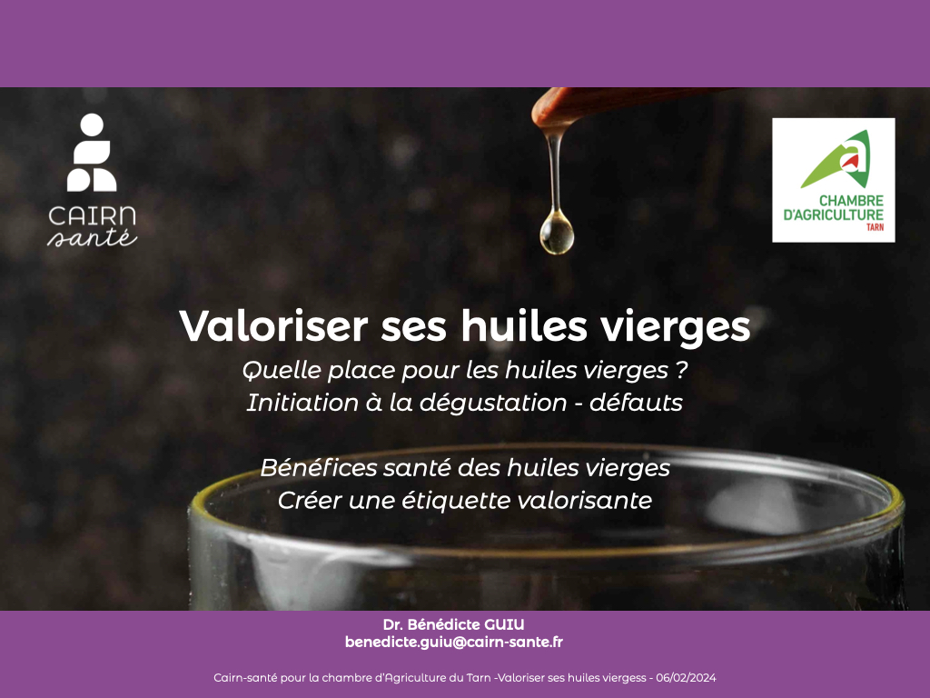 - Des ateliers thématiques : dégustation et création d'huiles aromatisées - Bénéfices santé des huiles vierges et mise en pratique